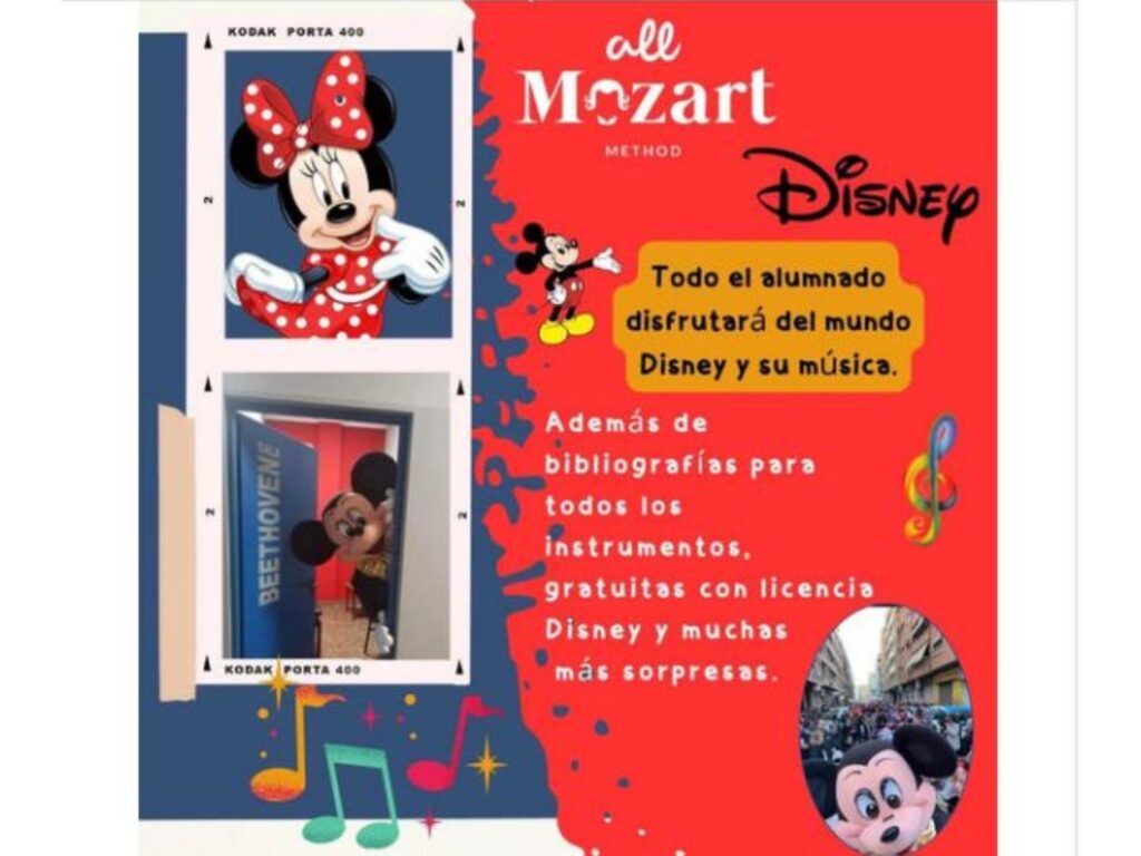 Mundo Disney y All Mozart. Nos espera un altísimo nivel de aprendizaje bajo el paraguas de la calidad Disney. Además el método está preparado para la obtención del titulo oficial en Enseñanzas Elementales de Música.